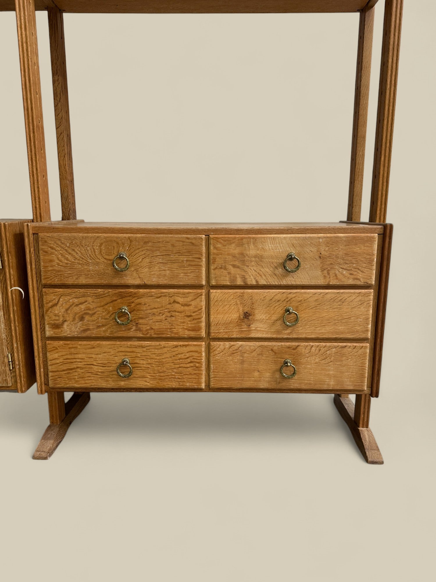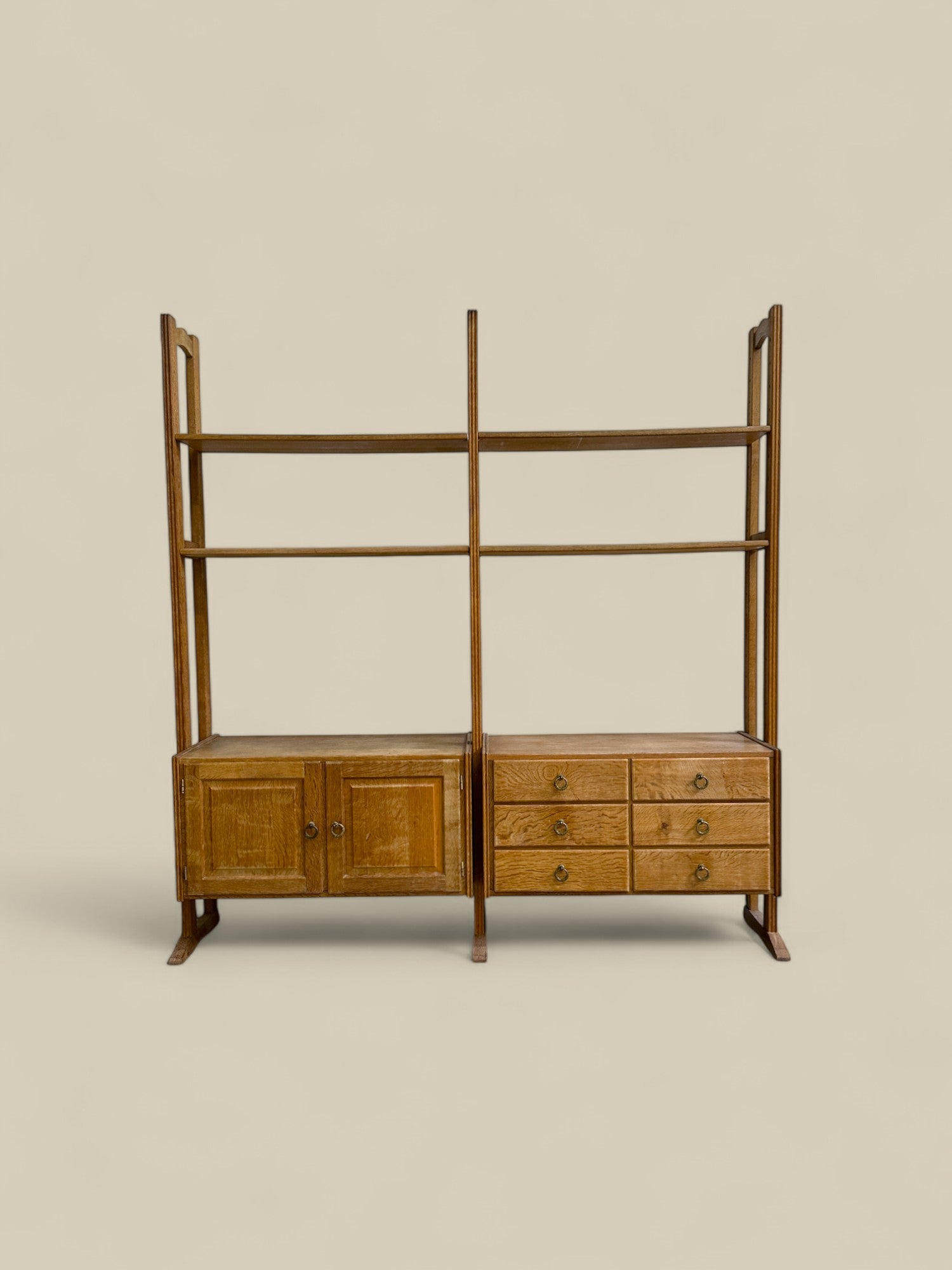 Practical and elegant, this Henning Kjaernulf oak wall system combines Danish design with versatile functionality. The solid oak construction offers durability while providing flexible storage and display options for your living space. Its timeless aesthetic complements various interior styles.