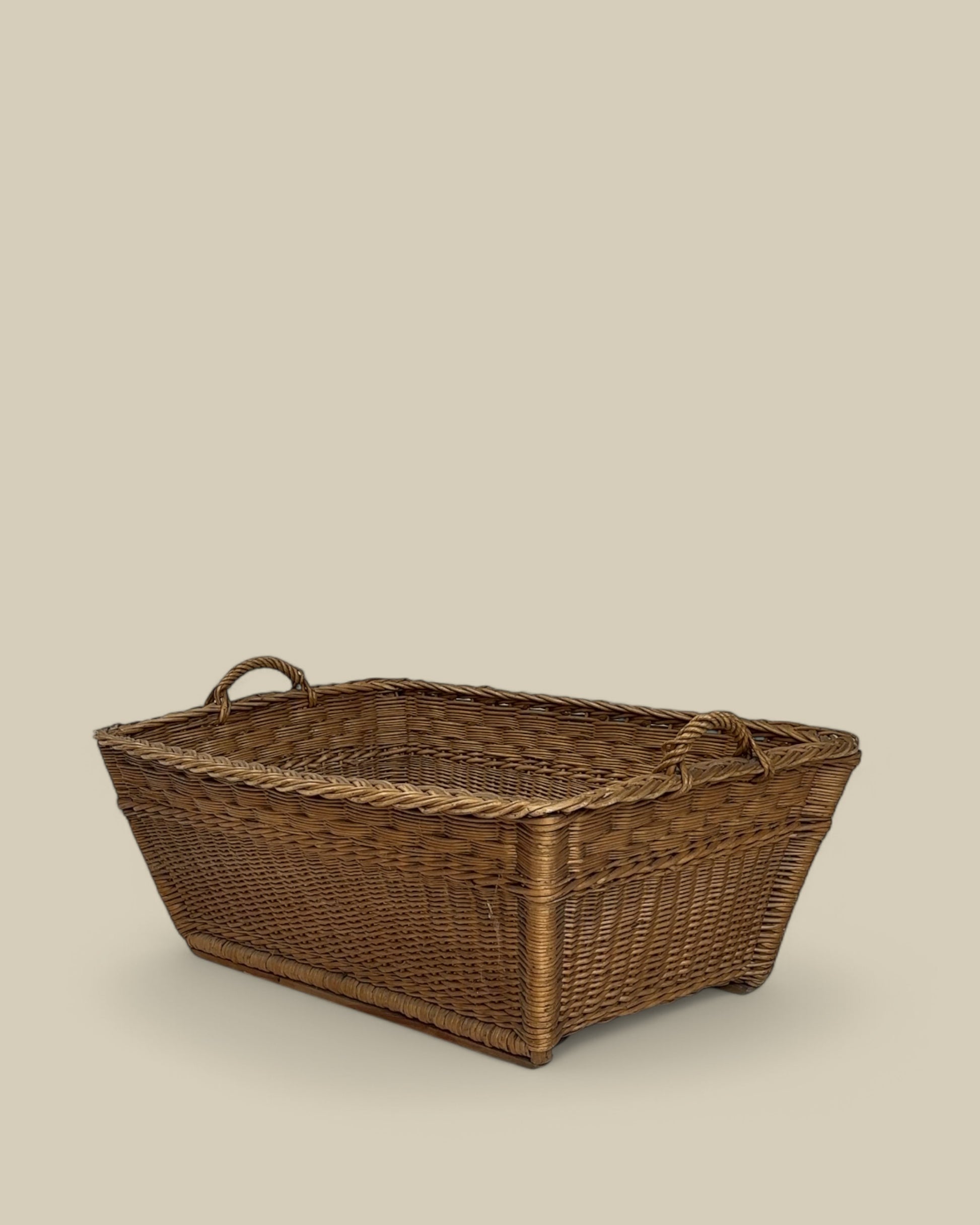 This large French woven basket is a versatile addition to any home. Its classic 1920s design and braided rim offer a stylish and functional way to organize and store items. Perfect for gathering fresh produce or as a decorative piece, this basket adds a touch of charm to any space.