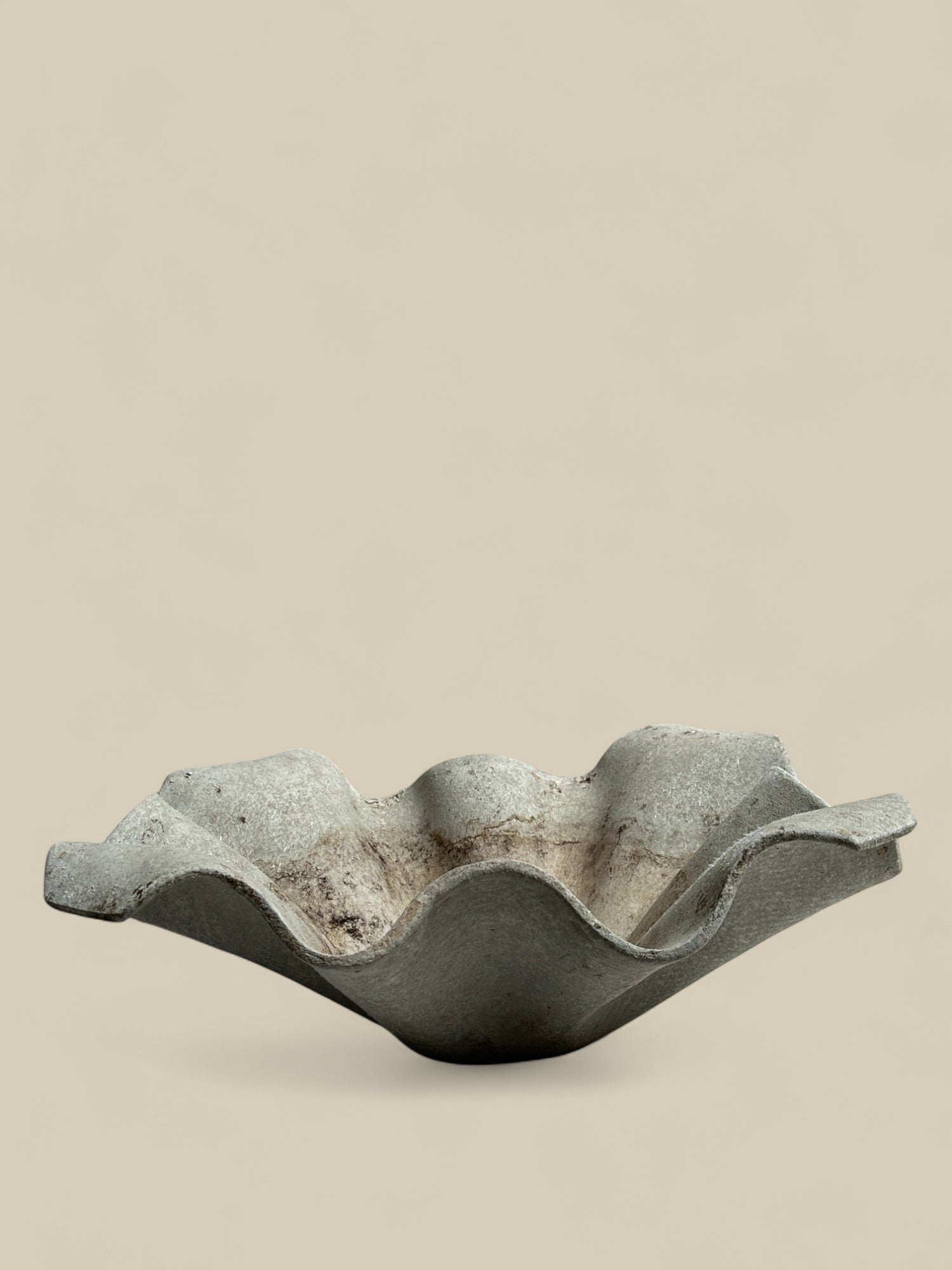 This Willy Guhl handkerchief planter features cast concrete construction with a beautiful patina that has aged well since the 1960s. Its simple, sculptural design brings a statement to your garden or indoor plant display.